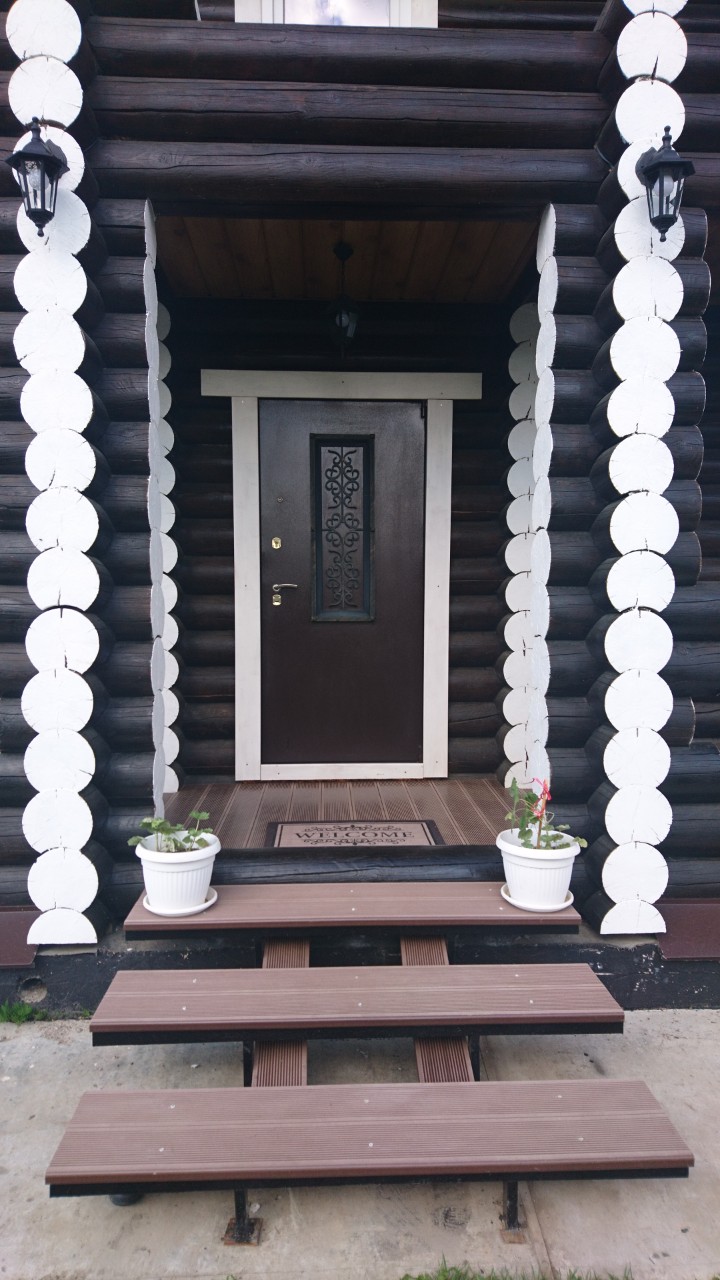 Село Троица в Сылвенском сельском поселении Пермского района Пермского края. Осуществили поставку террасной доски Декрон и ступеней для деревянного коттеджа из оцилиндрованного бруса.