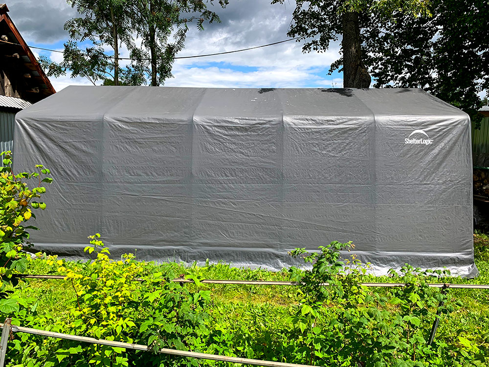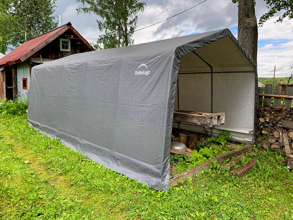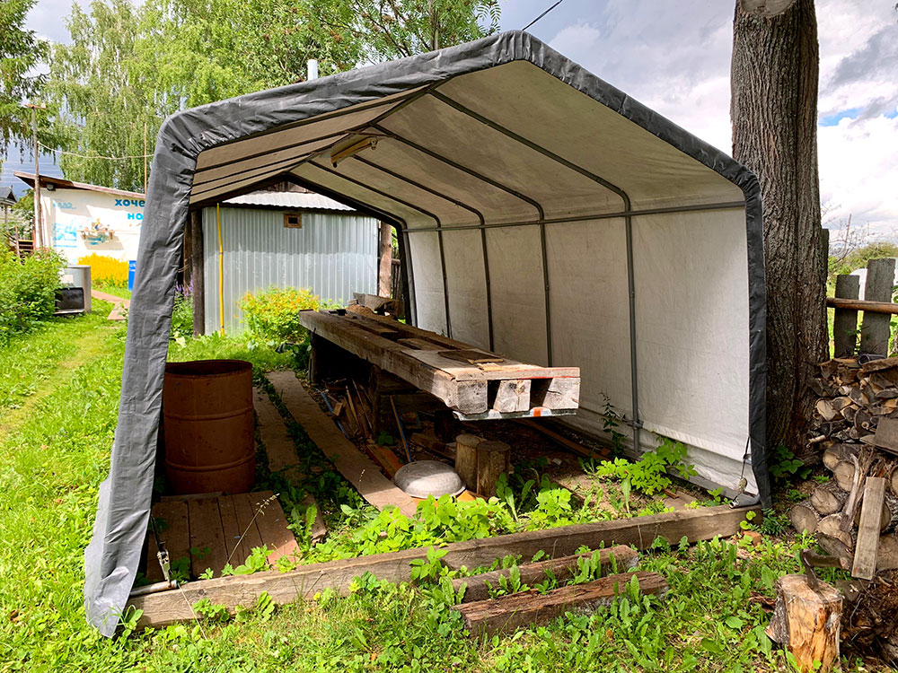 Тентовый гараж-сарай для дачного участка